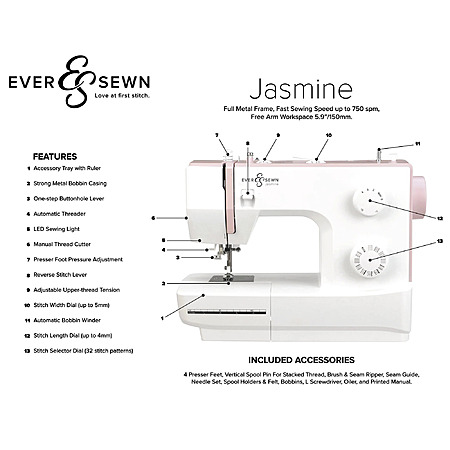 EverSewn Jasmine 32 Stitch Mechanical Sewing & Quilting Machine w/ Accessories $40 + Free Shipping