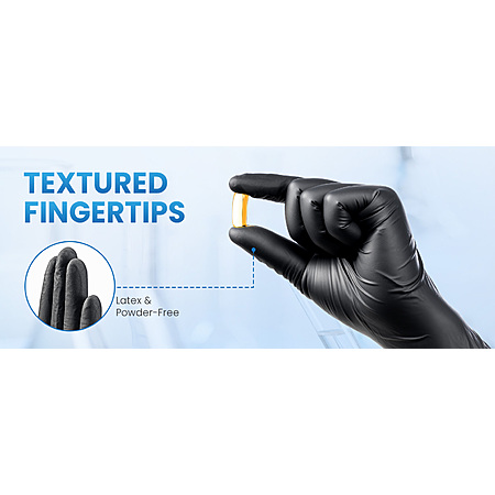 Model: Borje Black Nitrile Disposable Gloves, 4 Mil Medical Exam Gloves, Latex & Powder-Free, Food Safe, Textured Fingertips, Cleaning, Large, 100 Count