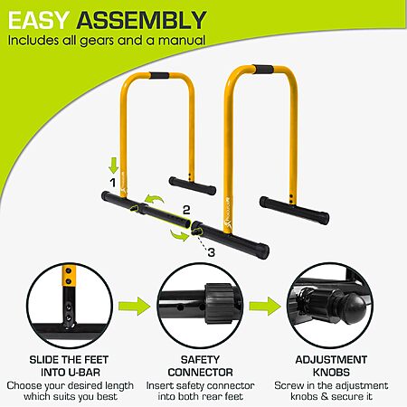 $44:ProsourceFit Dip Stand Station, Heavy Duty Ultimate Body Press Bar with Safety Connector for Tricep Dips
