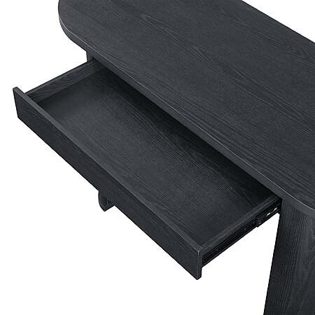 Product Description: | Transform your workspace with the Better Homes & Gardens Juliet Oval Writing Desk, a perfect blend of style and functionality. Whether you’re working from home, managing household tasks, or simply need a chic spot for creative projects, this contemporary desk with drawers is designed to meet your needs. Its solid wood construction ensures durability. The large center storage drawer with soft-closing ball-bearing glides keeps essentials like pens, notebooks, or chargers neatly tucked away, reducing clutter and enhancing your productivity. The work table's stylish curved legs add a touch of sophistication to any home office or commercial space, making it a versatile piece that complements various decors. Ideal for remote employees, homeowners, and families, the Juliet Oval Writing Desk also fits perfectly into cozy apartment settings. Elevate your workspace with a the Better Homes & Gardens Juliet Oval Writing Desk. Better Homes & Gardens Juliet Oval Writing Desk, Rich Black Finish Built to last, providing a sturdy workspace Available in warm honey, walnut and black to suit your style Spacious center drawer Soft-closing ball-bearing glides for smooth and quiet drawer operation Stylish curved legs Versatile design for home offices, commercial spaces, or apartments Easy to assemble Dimensions: 54 in W x 20 in D x 30.75 in H (137.2 cm x 50.8 cm x 78.1 cm) Packaging Dimensions: 61.75 in W x 26.5 in D x 8.5 in H Packaging weight: 100.75 lb (45.7 kg) Model# BH3425004710018, BH3425004710016, BH3425004710017 |