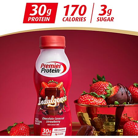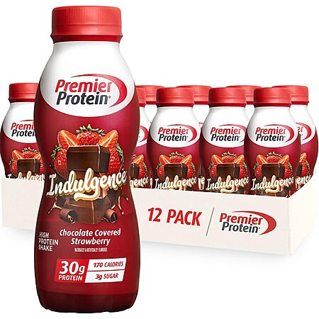 Amazon has 12-Pack 11.5-Oz Premier Protein Indulgence 30g Protein Shake (Chocolate Covered Strawberry) for $24.84 - $5 when you 'clip' the coupon on product page - 5% when you check out via Subscribe & Save = $18.60. Shipping is free w/ Prime or on $35+ orders.