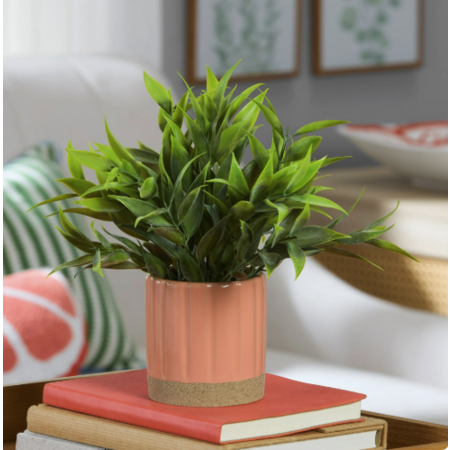 Model: Mainstays by Becky G. & Alejandra 8" Artificial Tealeaf in Pink Two-Tone Ribbed Ceramic Pot
