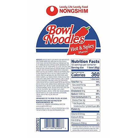 Nongshim Ramen Noodles, Gourmet Instant Ramen bowl, Premium Microwavable Noodle Soup, Hot & Spicy, 3.03 Ounce (Pack of 6)~$4.66 After Coupon & S&S @ Amazon