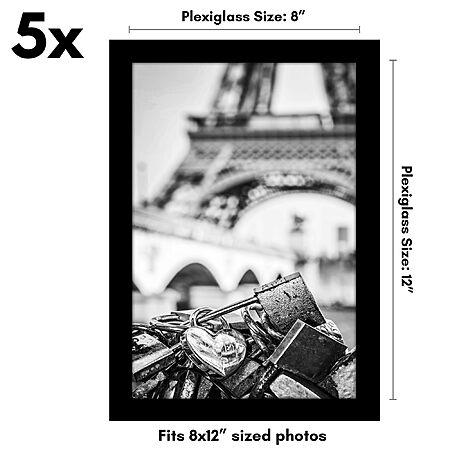 5-Pack Americanflat 8x12 Picture Frames with Polished Plexiglass Galleria Collection (Black) $10.40 ($2.08/ea) + Free Shipping w/ Prime or on $35+