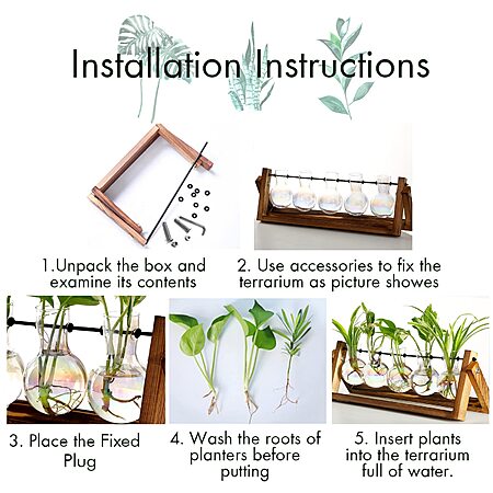 - ✿ Perfect combination of natural wood and colourful glass- Frame is made of nature wood, mottled surface; 5 bulb terrariums are made of High boron silicon heat resistant glass.(Not easy to be broken).Great for floral arrangement, home decoration as well as various gift ideas.