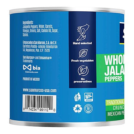 [S&S] $1.50*: 26-Oz San Marcos Whole Jalapeno Peppers at Amazon