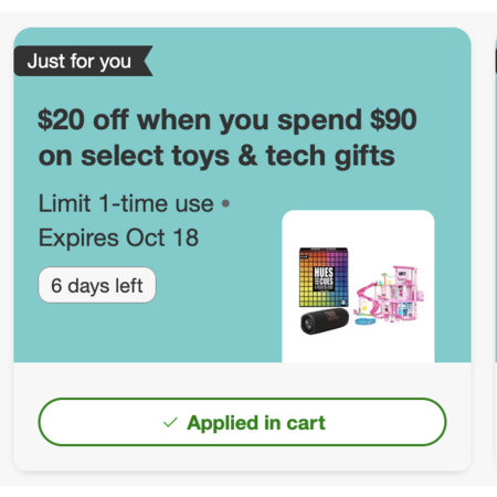 Bonus: Save $20 when you spend $90 on toys & tech gifts