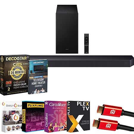 Model: Samsung HW-Q600F 3.1.2ch Soundbar and Subwoofer Bundle with CPS Exclusive 26 Month Protection Pack, Premiere Movies Streaming, 2X HDMI Cable & Deco Gear Complete Home Theater Beginner's Guidebook