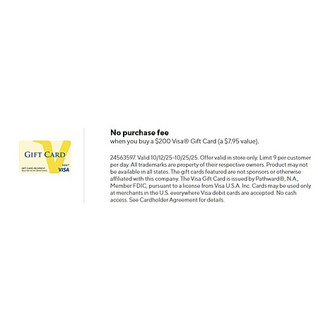 At Staples - No Purchase Fee when you buy a $200 VISA Gift Card In Store Only (a $7.95 value) - Starts from 10/12-10/25 - Limit 9 per customer per day