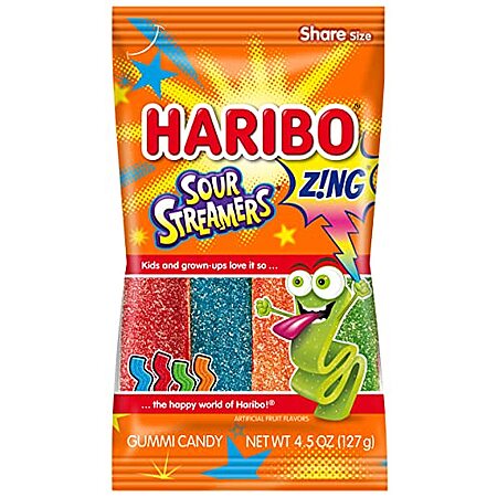 $15.36: 12-Pack 4.5-Oz Haribo Gummi Candy (Z!NG Sour Streamers) at Amazon ($1.28 each)