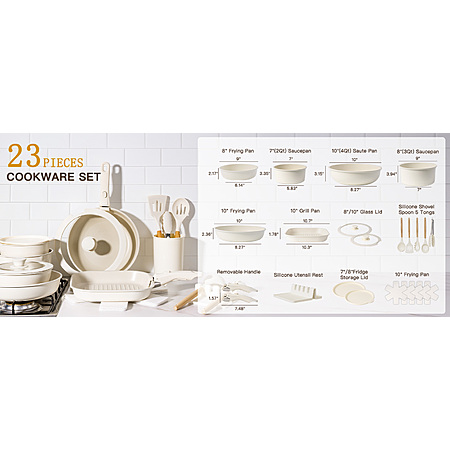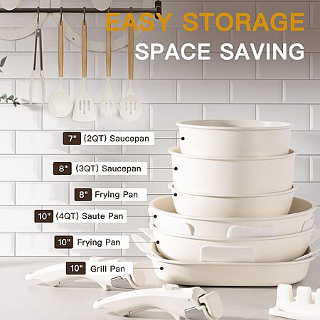 Prime Members: 23-Piece Astercook Ceramic Stackable Non Stick Cookware Set w/ Detachable Handles (Cream White) on sale for $79.99 - 25% off when you