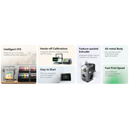 - CFS: Optional, up to 4 filaments each, 16 max with 4 CFS, RFID recognition
