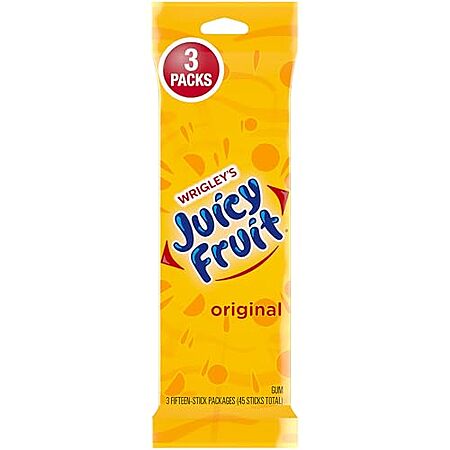 Amazon [amazon.com] has 3-Pack 15-Count Juicy Fruit Gum Original Chewing Gum for $1.44 - 20% when you 'clip' the coupon on product page - 5% when you check out via Subscribe & Save = $1.08.