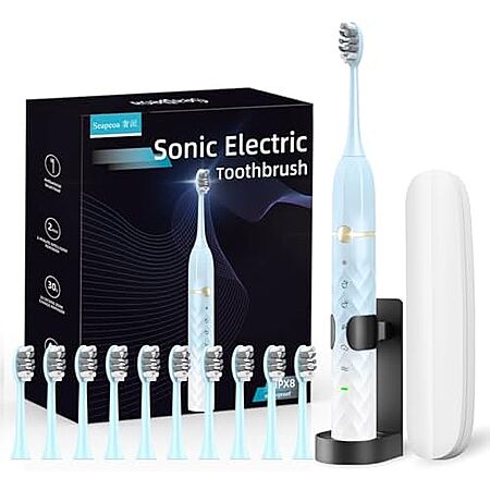 $8.49*: Seapeoa Rechargeable Electric Toothbrush w/ 10 Brush Heads & Travel Case at Amazon