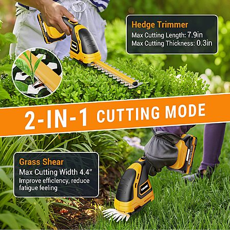 21V EWORK Cordless 2-in-1 Hedge Trimmer & Grass Shears w/ 2x2.0Ah Batteries + Charger $29.99 + Free Shipping w/ Prime or on $35+