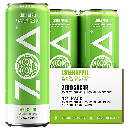 [S&S] $12.57: 12-Pack 12-Oz ZOA Zero Sugar Energy Drinks (Green Apple) at Amazon ($1.05 each)
