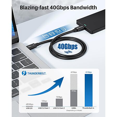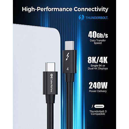 Cable Matters [Intel Certified] 40Gbps Thunderbolt 4 Cable 3.3ft $23.99 @Amazon