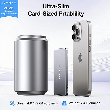 5000mAh iVanky 0.3" Ultra Slim Magsafe Fast Charging Wireless Portable Charger Qi Certified for iphone 16/15/14/13/12 Pro $15 & More + Free Shipping w/ Prime or $35+