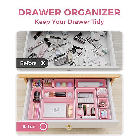 Prime Members: 25-Piece BiuLeon Plastic Drawer Vanity Bathroom Desk Organizer Set (Pink) $11.99 + Free Shipping