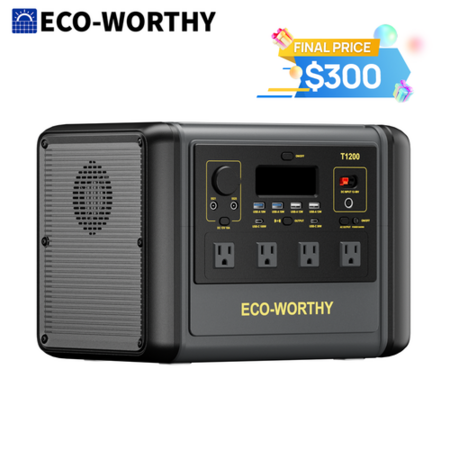 ECO-WORTHY 1200W 1024Wh Portable Power Station Solar Generator $300 + Free Shipping