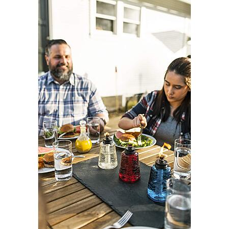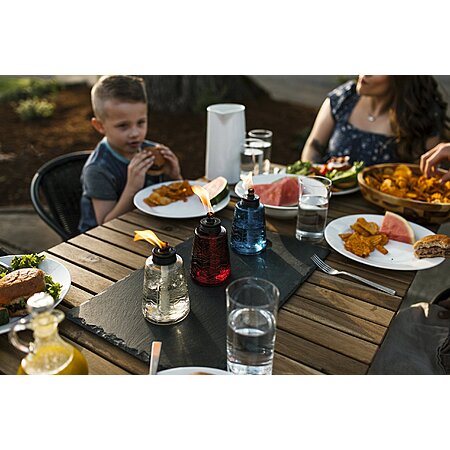 Model: TIKI, Brand Molded Glass, Decorative Table Top Torch for Outdoor Lawn, Patio, and Garden White & Blue (Set of 3), 1117213, Red, White and Blue