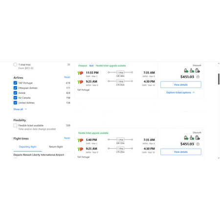 TAP Air Portugal via Booking.com have round trip airfares travelling from New Jersey (EWR) to Maputo Mozambique (MPM) for $452, making 1 stop in Lisbon both ways for 7-24 hours so definitely plan ahead and make it 2-trips-in-1. These are economy lite fares that allow a personal item and a carry-on bag. There is no seat selection and no change.