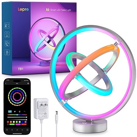 Model: Lepro TB1 AI Smart Table Lamp, RGB+IC Addressable LED Lamp Alexa Google Enabled, APP Control Color Changing Modern Lamp No Remote, Christmas Gift Ideas, AI Generated Lighting LLM, 2.4 GHz WiFi