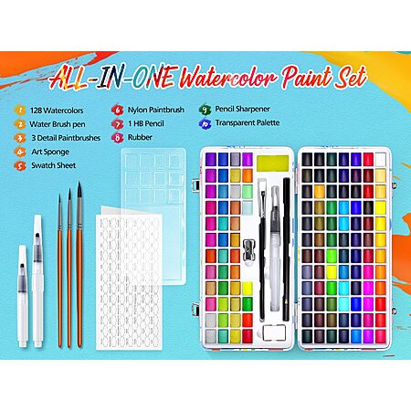 128-Colors Caliart Watercolor Paint Set w/ 4 Brushes $14.99 + Free Shipping w/ Prime or on $35+