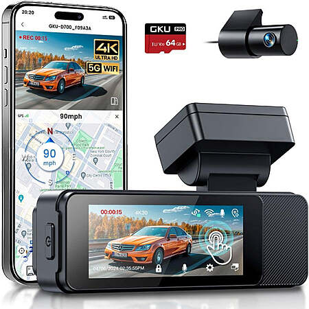 GKU D700 4K+1080P 5G WiFi GPS 3.18 Inch Touch Screen Dash Cam $54 + Free Shipping