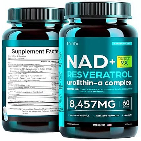 ArtNaturals US via Amazon[amazon.com] has thinbi 60-Count 8457-Mg NAD+ Complex Urolithin A Resveratrol Supplement for $39.97 - 50% when you 'clip' the coupon on product page - 10% when you check out via Subscribe & Save = $15.98. Shipping is free.