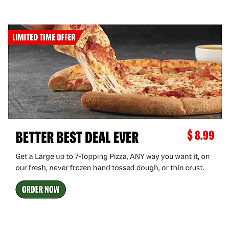 YMMV North Texas Only? - Papa Johns Better Best Deal Ever Large 7 Topping $8.99 Carry Out or Delivery