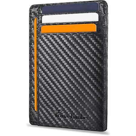 Model: Travelambo Front Pocket Minimalist Leather Slim Wallet RFID Blocking Carbon Fiber Texture(Black)