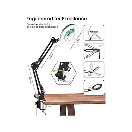 UBeesize 10x Magnifying Glass Desk Mount w/ Adjustable Light & Stand $19.99 + Free Shipping w/ Prime