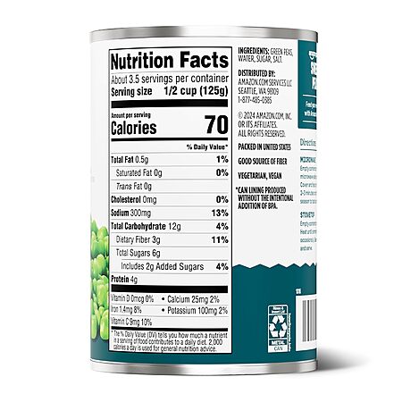 Model: Amazon Grocery, Sweet Peas, 15 Oz (Previously Amazon Fresh, Packaging May Vary)