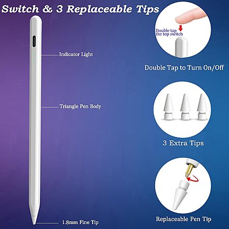 CPKEON Stylus Pen w/ Palm Rejection (for iPad Pencil 10th Gen, White or Pink) $4.99 + Free Shipping w/ Prime or on $35+