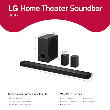 LG - 7.1.3-Channel S90TR Home Theater Soundbar with Wireless Subwoofer and Rear Speakers, Dolby Atmos, WOW Orchestra - Black - Open Box $545.99
