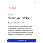 Vanilla Visa gift card - $0 Purchase fees