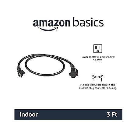 $3.99:AmazonBasics 3FT Extension Cord - 3 Prong Outlet Extender, Indoor Extension Cord, 13 Amps, 125V