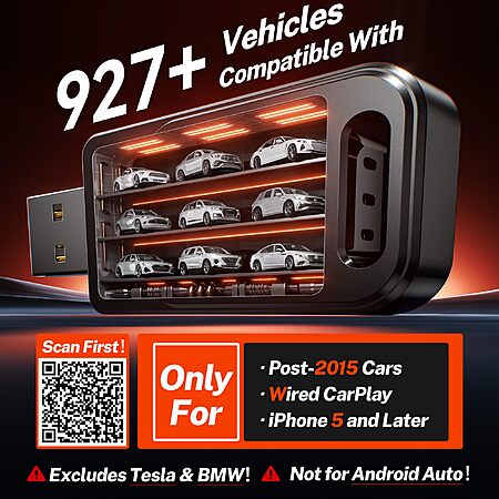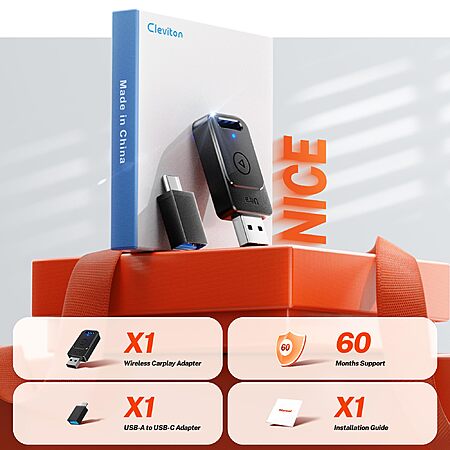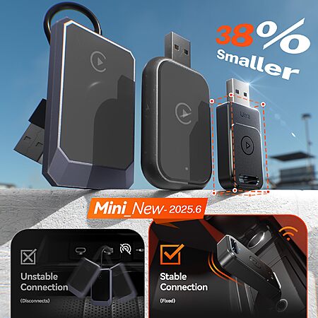 Wireless Carplay Adapter: 0.2W Mini Car Play Dongle for iPhone, Wi-Fi 6 + BT 5.3, USB A to C Adapters (included) $19.99