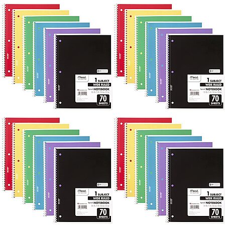 24-Pack Mead 1-Subject 70-Sheet Spiral Notebook (Assorted Colors) $22.18 + Free Shipping w/ Prime or on $35+