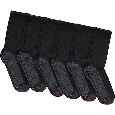 Amazon has 6-Pack Hanes Men's Max Cushioned Crew Socks (Black/Grey) on sale for $6.51. Shipping is free w/ Prime or on $35+ orders.