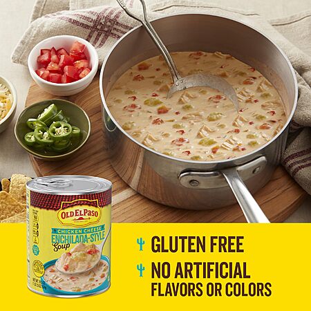 - Old El Paso Chicken Cheese Enchilada-Style Soup is gluten free and contains no artificial flavors or colors from artificial sources