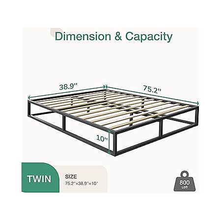 Novilla Twin Metal Platform Bed Frame w/ Wood Slat Support (Black) $43.99 + Free Shipping w/ Prime