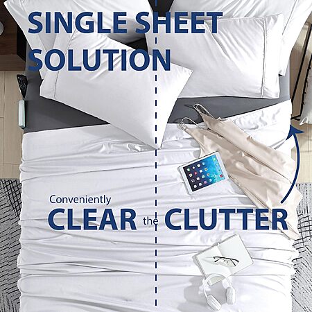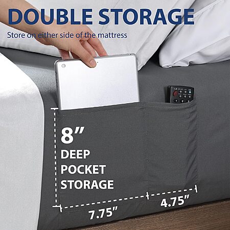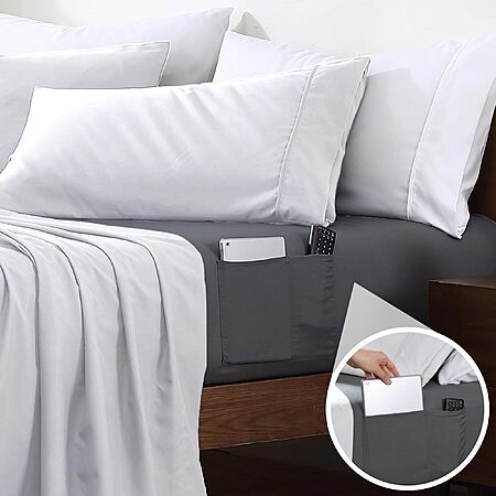 - Clear the clutter on top of your bed in minutes with the smart pocket fitted sheet. With organizer pockets on both sides, items are only within an arm's reach. This fitted sheet, made of 100% double brushed microfiber, is amazingly soft and will enhance your bedroom styling.