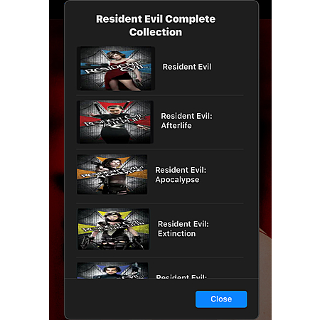 resident evil complete 4K 6 film collection, Apple TV iTunes $27.99