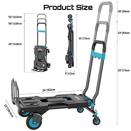 Seesii-US via Amazon [amazon.com] has 2-in-1 SEESII 330 lbs Capacity Folding Hand Truck Cart Dolly w/ 3-Gear Retractable Handle & TPR Wheels on sale for $94.99 - $47.50 off when you apply promo code VDGIWA7C = $47.49. Shipping is free w/ Prime or on orders $35+.