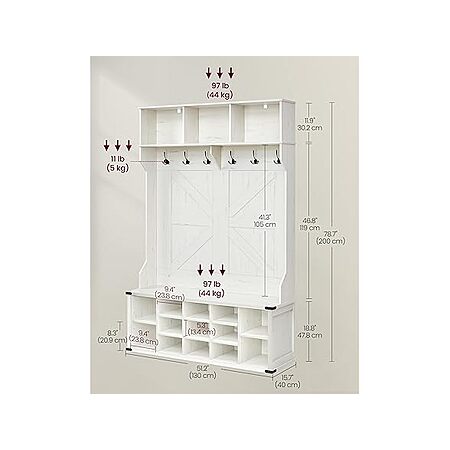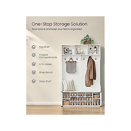 Woot [woot.com] has 78.7" x 51.2" Vasagle Farmhouse Style Entryway Coat Rack and Shoe Bench w/ 16 Open Compartments & 6 Tri-Hooks (Rustic White, Heather Greige) for $74.99. Shipping is free w/ Prime. Otherwise shipping is $6.