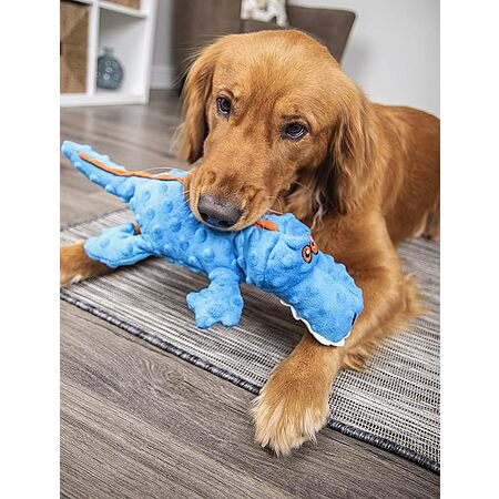 Model: goDog Gators Squeaker Plush Pet Toy for Dogs & Puppies, Soft & Durable, Tough & Chew Resistant, Reinforced Seams - Blue, Large