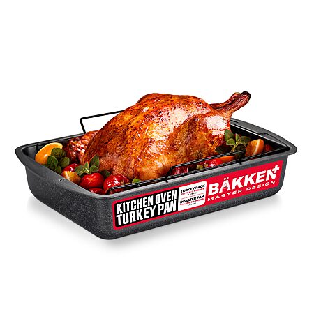 BAKKEN Nonstick Turkey Roasting Pan with Rack – 17 X 13 inch, Large Heavy-Duty Carbon Steel Wide Handles, Oven Safe Up to 450F, $19.54 Prime Ship or $35