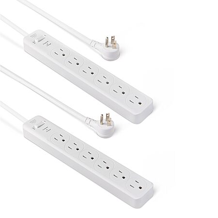 $4.43:2-Pk AmazonBasics 6-Outlet 600 Joule Surge Protector Power Strip w/ 2' Cord (White)